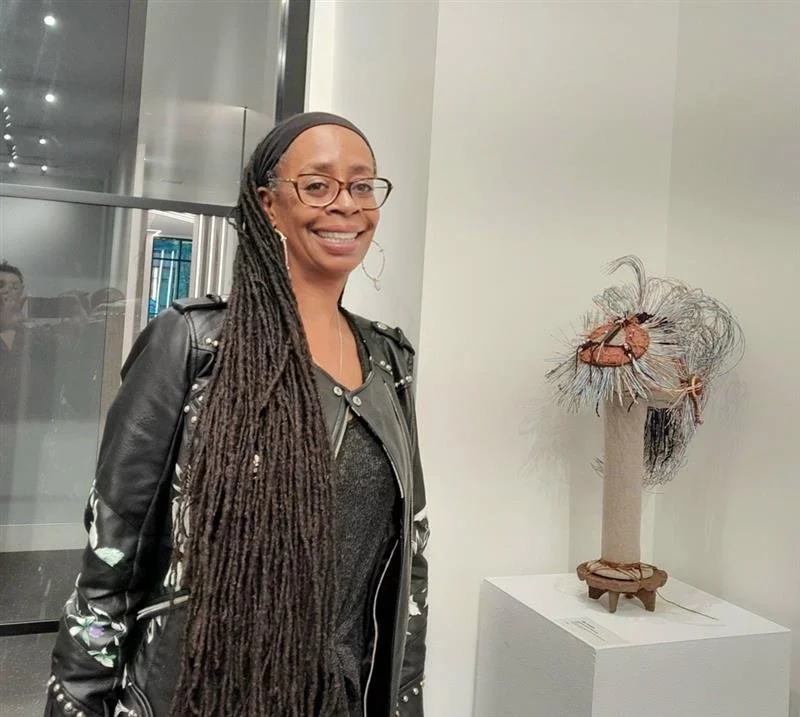 It is not unusual to find found objects included in her work, when creating forms such as masks, figures, and headdresses with intricate beadwork. Kilolo has also honed her skills as a jewelry designer and potter.